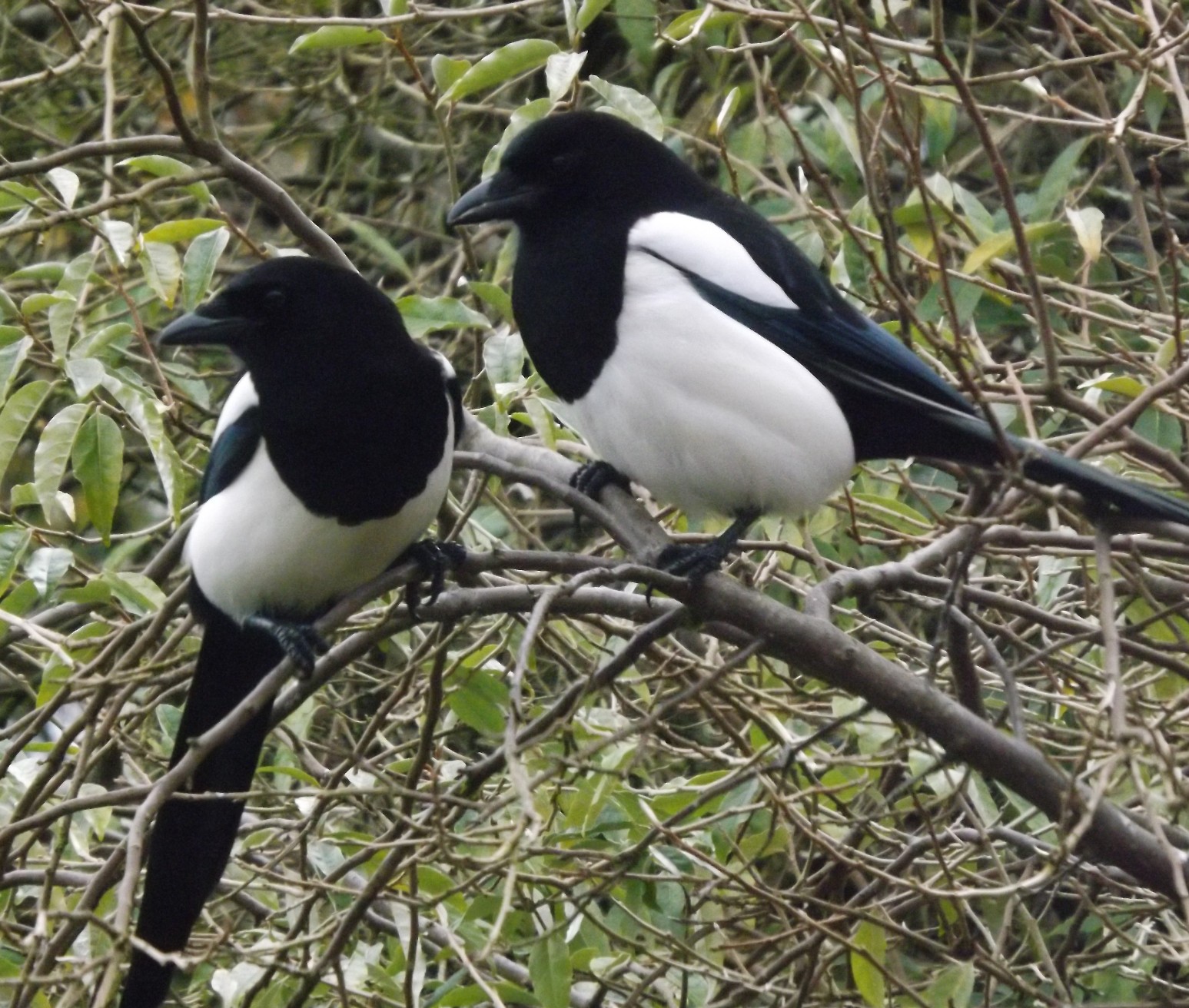 It's an absolute joy to be able to photograph birds now and this pair of magpies were sitting obligingly in a tree nearby. I find all the crow family incredibly shy so have never managed to get close before. This camera seems to be pretty good at ignoring the double glazing and focusing pretty well on the subjects. If we were to rule our lives by the old magpie rhyme, our fortunes would change by the minute we see so many of them. Here are a few more: